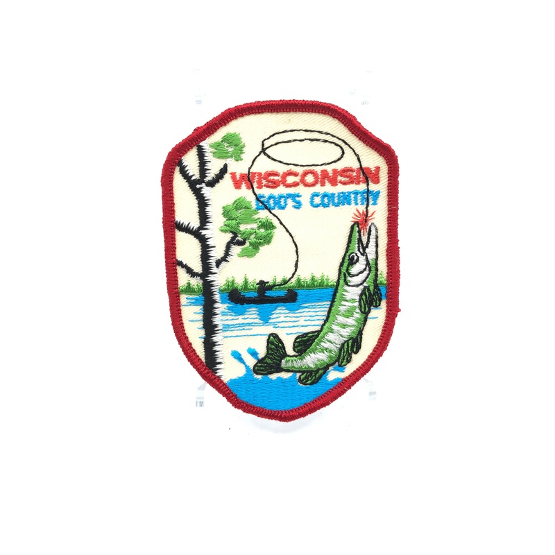 Wisconsin God’s Country Musky Fishing Patch. About 4 1/4″ x 3″. Unused and in nice overall condition. See photos.These look awesome with your fishing lure display or put on your fishing gear.Add to your collection today!