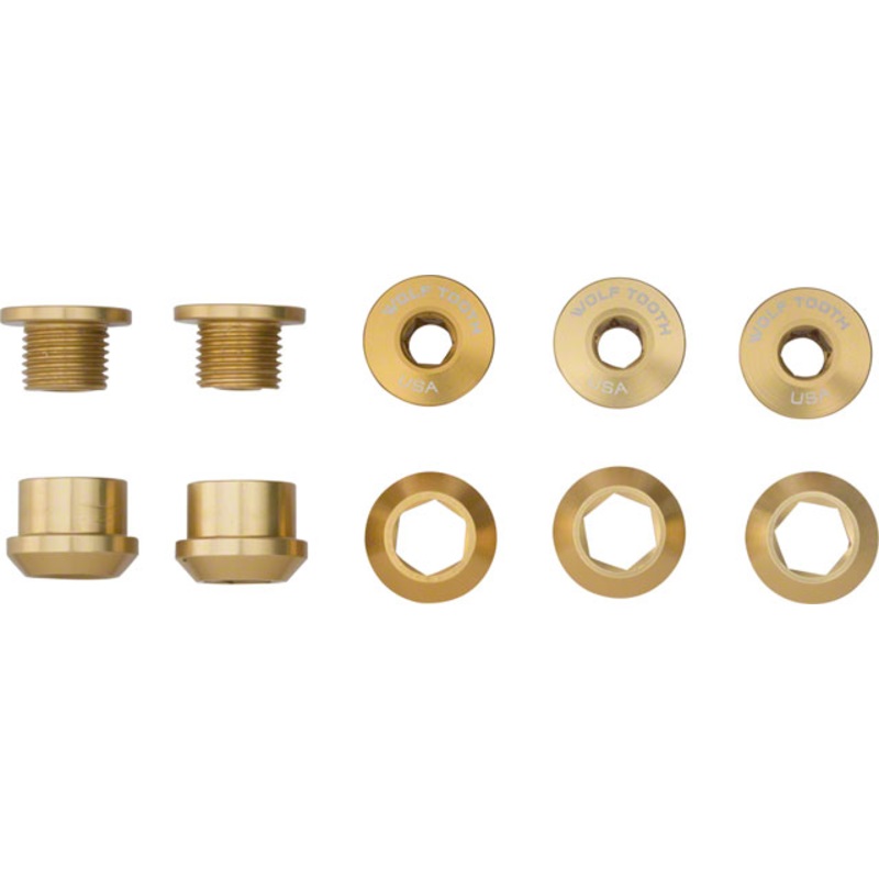 Wolf Tooth 1x Chainring Bolt Set – 6mm, Dual Hex Fittings, Set/5, Gold