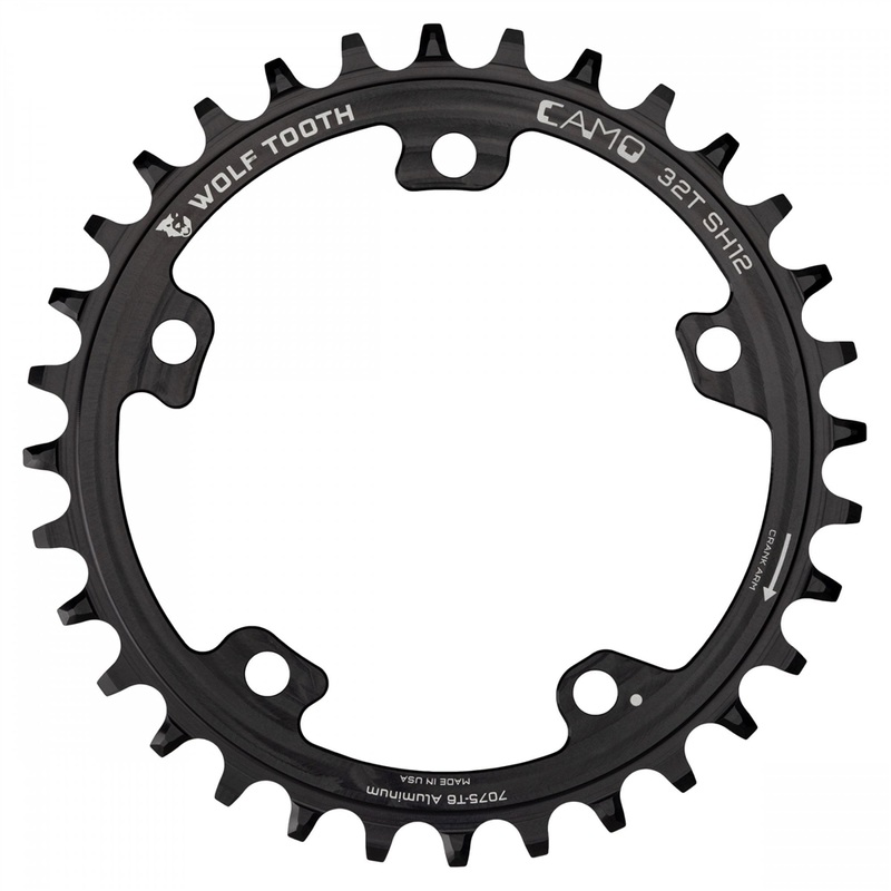 Wolf Tooth Components CAMO Aluminum Round Chainring For Shimano 12 Speed Hyperglide+ Chain Black
