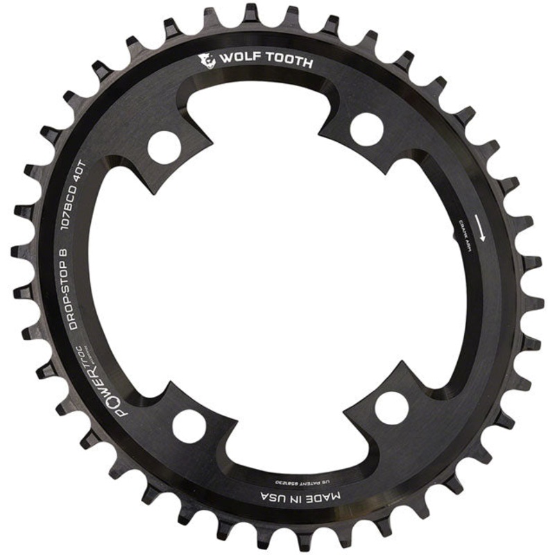 The Wolf Tooth Elliptical 107 BCD Chainring for SRAM cranksis compatible with most new SRAM 1x road cranks that use the 107 BCD spider, including the SRAM AXS Power Meter Spider. This chainring uses the patented Wolf Tooth Drop-Stop B Wide/Narrow tooth pro