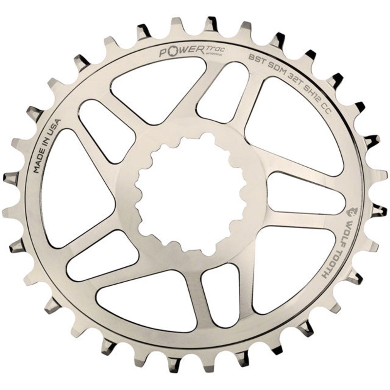 These Wolf Tooth Elliptical Direct Mount Chainrings are designed to work with Cane Creek eeWings cranksets and SRAM direct mount cranksets with a 3-bolt interface. The proprietary Powertrac design has an ovality of 10% and a timing of 112 degrees after top dead center, providing benefits such as greater rear wheel traction. The tooth profile was developed specifically for Shimano’s XTR, XT, and SLX 12-speed Hyperglide+ chain.