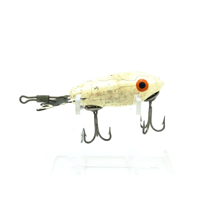 Wooden Bomber 200 Series, #01 White Color. About 2 1/2″ long including lip. Usedlurewith some wear and a few marks but still in overall ok condition. The hooks are in good condition as well. One of the all time greatestlures. Fish or collect. See photos.