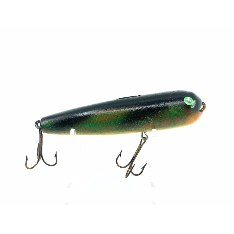 Wooden Topwater Musky Bait Perch Color. Great wooden bait from an unknown maker. Lure is about 6″ long. Used with some minor wear but in overall good condition. Fish or collect. See photos.