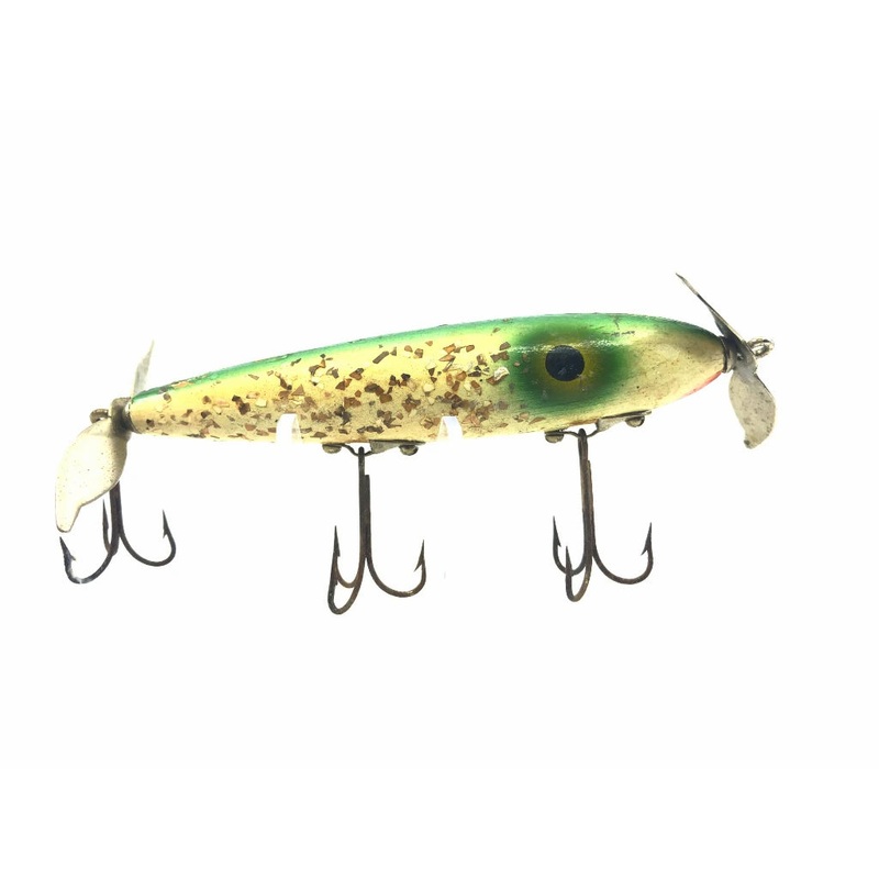 Wooden Torpedo Bait White with Sparkles. At about 4 1/4″ long with some wear but nothing major. Perfect for any fishermen or collector! See photos.