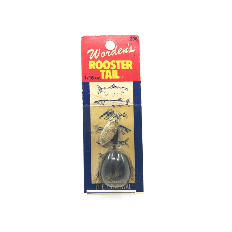 Worden's Rooster Tail 206 BL Black New Old Stock. Great small spinner bait. Weighs about 1/6 oz. Fish or collect. See photos.See all ofour Worden's Lures for sale here.