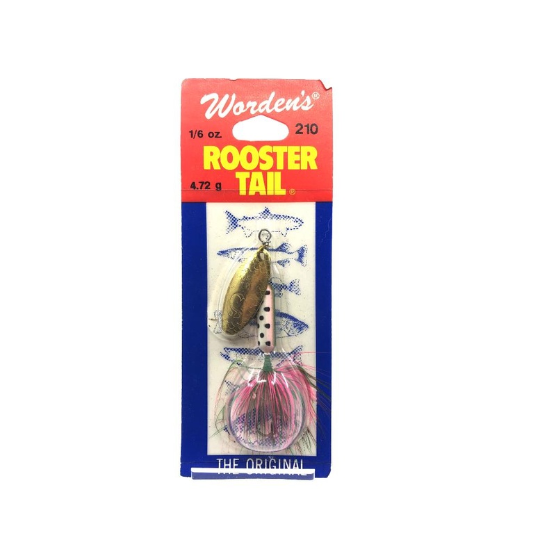 Worden's Rooster Tail 210 RBOW Rainbow New Old Stock. Great deal here. A classic buck tail spinner bait that weighs about 1/6 oz. Offers plenty of action and flash. Perfect for your tackle box. See photos.See all ofour Worden's Lures for sale here.